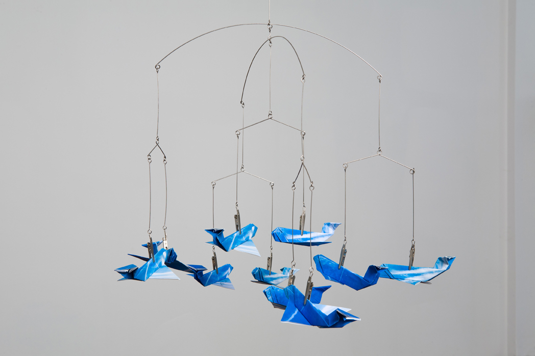 Origami jet planes constructed from digital photos, C-print on aluminum, mobile, digital prints